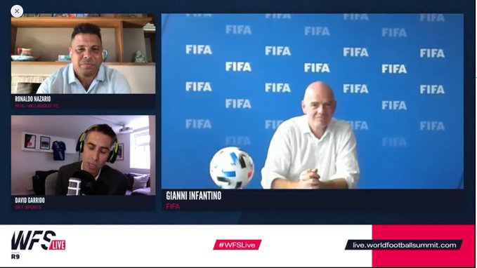 En el acto de clausura del foro virtual organizado por World Football Summit y el exfutbolista y empresario brasileño y presidente del Valladolid, Ronaldo Nazario, Infantino respondió a preguntas de éste y habló de forma distendida sobre la situación actual y "la dureza" de tener que parar este deporte en todas partes salvo algunas excepciones.