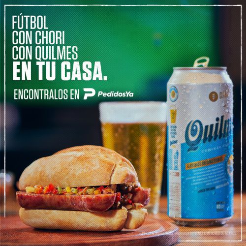 A través de una alianza entre Quilmes y Pedidos Ya, los fanáticos de fútbol podrán pedir a domicilio por la aplicación de delivery combos de comida de cancha para disfrutar en sus hogares: empanadas, pizzas, milangas, lomito y por supuesto Chori con packs de cerveza Quilmes helada #DuplaFutbolera