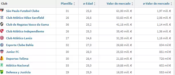 En cuanto a los planteles, estos son los equipos más valorados del torneo: