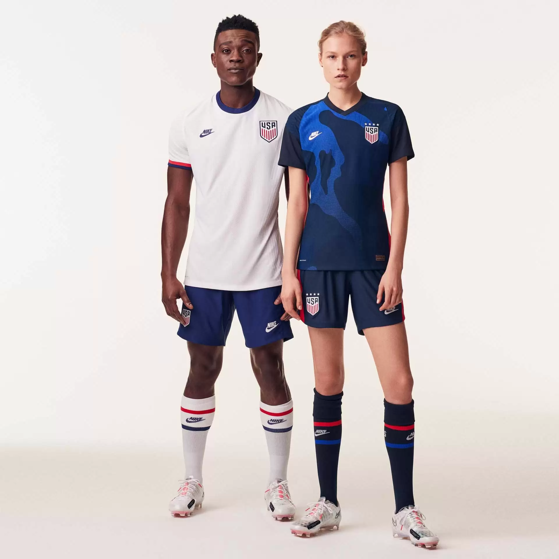 La indumentaria de Estados Unidos será la única en llevar el logo noventero Nike Futura. La camiseta y medias titulares son blancas y el short azul. El conjunto suplente es totalmente azul y en la remera hay diseños de un tono más claro. Solo la ropa femenina llevará estrellas sobre el escudo.