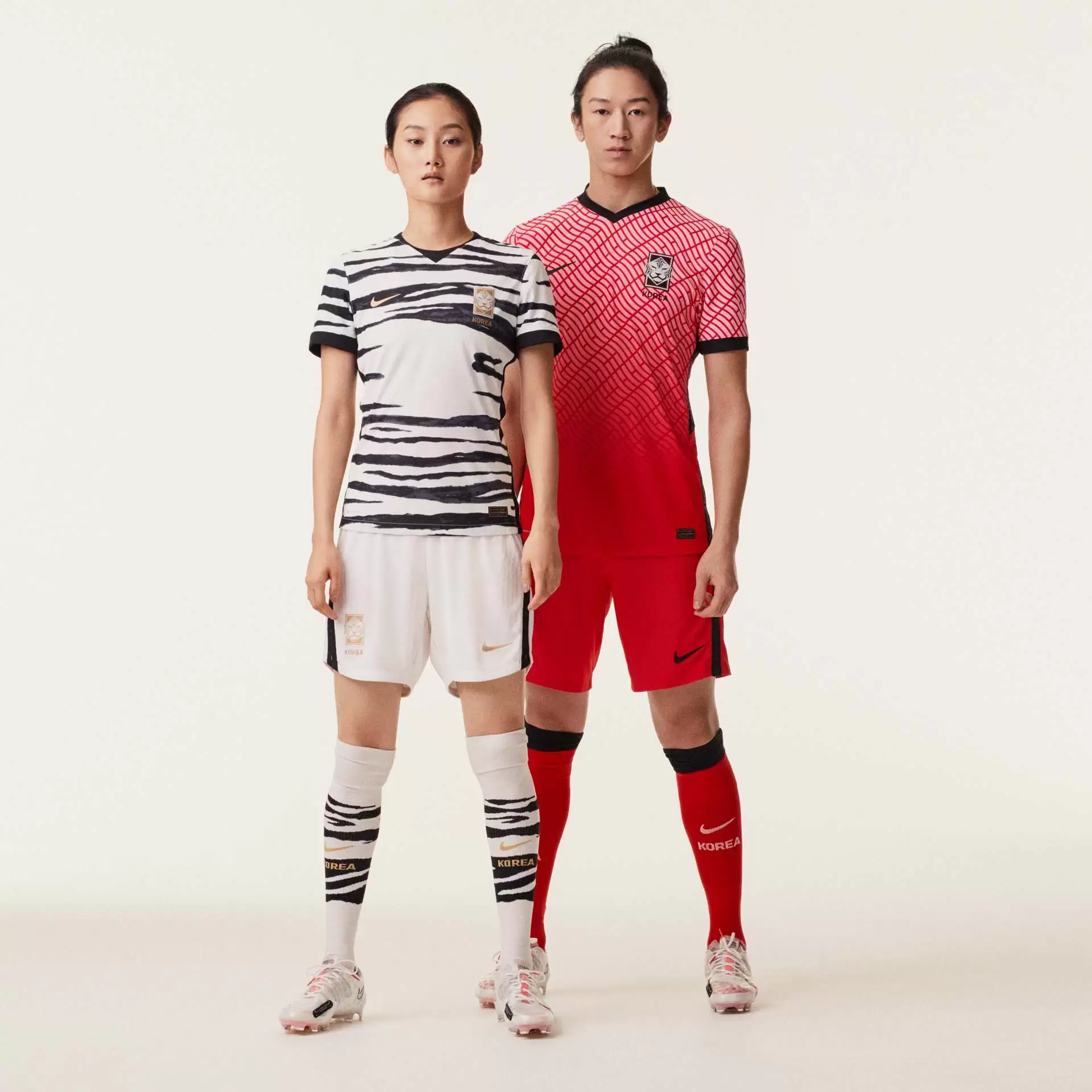 Por último, la de los asiáticos también tiene un diseño particular. La principal es rosa y gradualmente pasa a ser roja y en ella se destaca un patrón gráfico que se inspira en los trigramas de la bandera coreana, los cuales representan al cielo, la tierra, el fuego y el agua. La suplente es blanca con rayas horizontales negras parecido a la piel de un tigre, figura central de la mitología coreana.