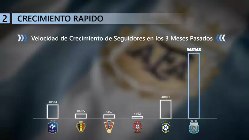 Desde hace un tiempo que la AFA apostó por China para crecer mundialmente y encontrar en ese mercado el camino para relanzar la transferencias de jugadores al exterior y sumar nuevos inversores. A través de las redes sociales, desde la AFA buscan generar contenidos para que se muestren en China, país donde la albiceleste superó el millón y medio de seguidores. Si se compara el crecimiento de followers en los últimos 3 meses con otras Federaciones, Argentina saca una gran ventaja con todas.