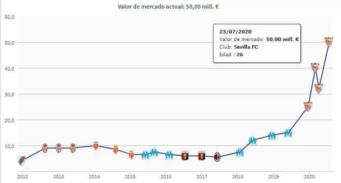 Su presente lo tiene como el jugador más valioso de todo el plantel del Sevilla y el 6° entre los jugadores argentinos que forman parte de la base de datos del sitio especializado en valores de mercado y transferencias. Su presente es incluso su mayor valor de mercado de toda su carrera.