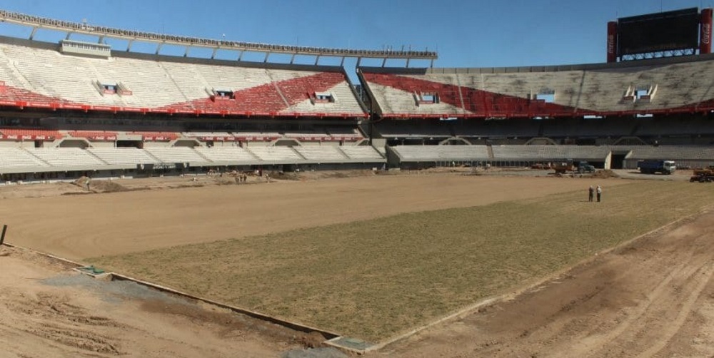 Durante la pandemia, la dirigencia de River decidió poner manos a la obra e invertir en la modernización de su campo de juego. Tras haber sacado la pista de atletismo que bordeaba la cancha, las máquinas excavadoras ingresaron y comenzaron a bajar el suelo del estadio hasta 1.9 metros.