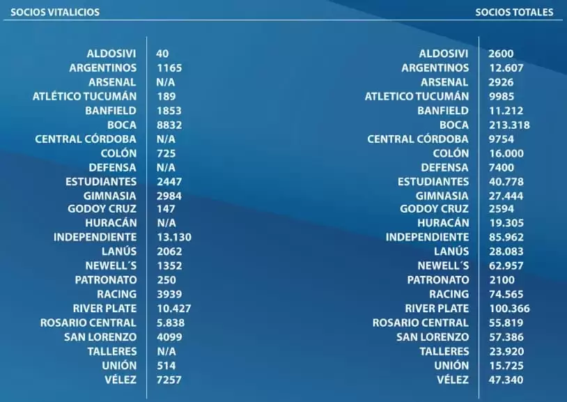 La respuesta ubica al Xeneize en primer lugar con un total de 213.318 asociados, muy por encima de su clásico rival. El Millonario cuenta con 100.366 socios. Esto equivale a que Boca tiene más del doble.