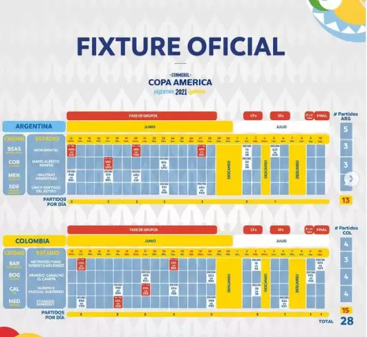 Para el 13 de junio está fijado el arranque de la CONMEBOL Copa América 2021. En esa fecha se enfrentarán Argentina y Chile, en Buenos Aires, y Paraguay y Bolivia, en Mendoza. La CONMEBOL dio a conocer fecha y sede de estos y los otros 26 partidos del torneo de selecciones más antiguo del mundo, que en esta ocasión se desarrollará en ciudades de Argentina y Colombia. El torneo no cambia de formato y será disputado por las 10 selecciones nacionales de Sudamérica, en ciudades ubicadas en los extremos Norte y Sur de nuestro continente.