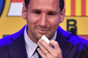 Unos días antes de partir rumbo a su nuevo club, Leo brindó una última conferencia de prensa en las instalaciones del Barcelona, donde dedicó sus últimas palabras a los hinchas del club blaugrana. Rememorando momentos gloriosos, respondiendo preguntas sobre su presente y su futuro y agradeciendo al club con el que consiguió un total de 35 títulos, Leo rompió en llanto a segundos de ingresar al escenario por un costado. En presencia de sus compañeros y ex compañeros de equipo, directivos, periodistas y su familia, el astro argentino mostró una imagen que muy pocas veces ha sido vista en público, su versión triste.