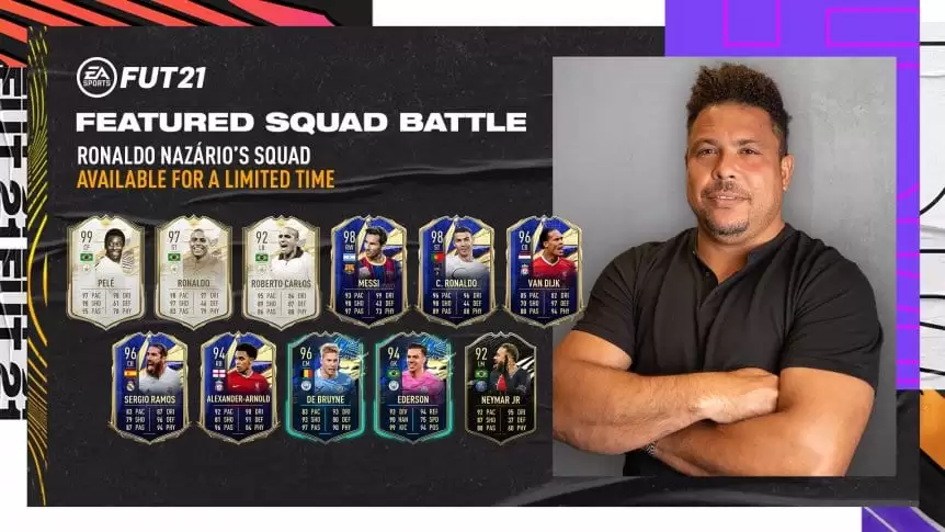 Como todas las semanas, EA Sports invita a un jugador o exjugador a que arme su equipo ideal con todas las cartas del FIFA 21. Esta vez fue elegido el fenómeno Ronaldo quien escogió para su equipo a 5 brasileños y 1 argentino, entre otros. para la modalidad de Squad Battle de Ultimate Team.