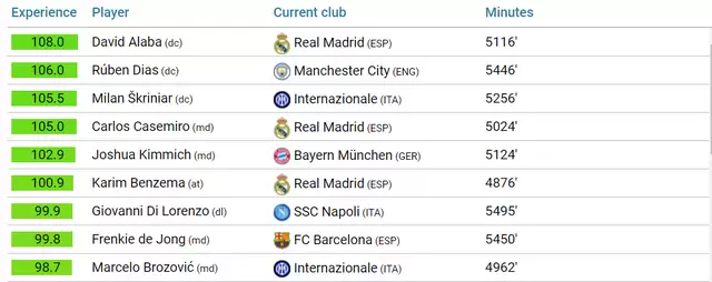 CIES Football Observatory armó un informe acerca de los jugadores con más capital de experiencia del fútbol actual: En primer lugar calculando el nivel deportivo de las ligas considerando los resultados obtenidos por los equipos en las competiciones internacionales de clubes (Champions League, Europa League, Copa Libertadores, etc.) durante los últimos 5 años.