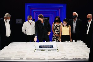 La dirigencia, con Marcelo Tinelli a la cabeza, inauguró el showroom del nuevo estadio, que estará ubicado en el predio recuperado de Avenida La Plata. Durante el evento mostraron la maqueta del Proyecto Urbano Integral elaborado por la empresa IDOM. La misma es una proyección de lo que será el innovador estadio, el cual tendrá multifunciones. La idea es aprovecharlo al máximo y no sólo usarlo para el fútbol. La estructura permitirá su uso para diferentes actividades.