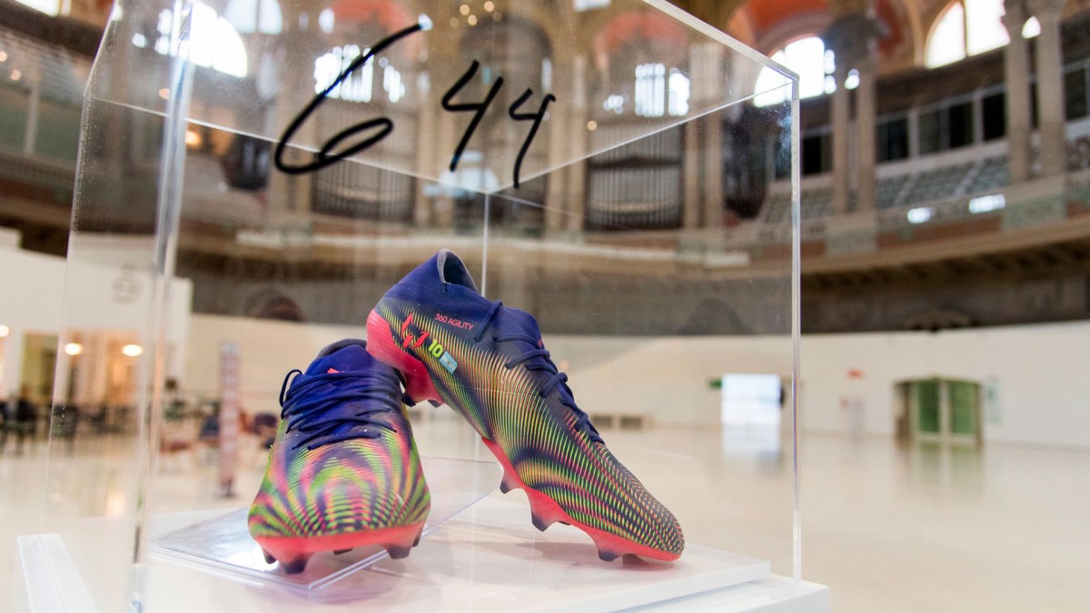 El argentino donó los botines con lo que superó a Pelé como el jugador con más goles en un mismo equipo y estos fueron subastados jutno al Museo Nacional de Arte de Catalunya.