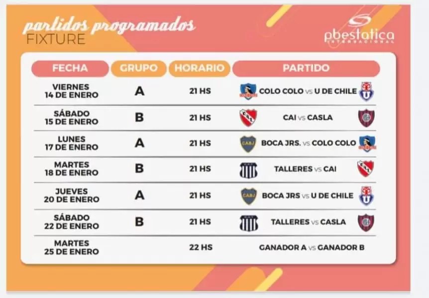 Los partidos se disputarán en el Estadio Ciudad de La Plata y el torneo se dividirá en 2 grupos de 3 equipos cada uno: Boca compartirá el Grupo A con los equipos de Chile mientras que los otros 3 argentinos restantes conformarán el Grupo B. La final entre los 1° de cada grupo se jugará el 25 de enero y tendrá un equipo argentino asegurado.