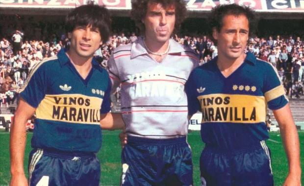 El primer partido oficial con “Vinos Maravilla” fue el 13 de marzo de 1983, en el triunfo por 2-1 sobre Gimnasia de Mendoza en la Bombonera.