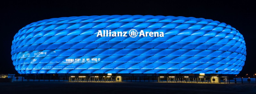 Diseñado por la firma Herzog & de Meuron, de Suiza, y la compañía de seguros alemana Allianz, el Allianz Arena de Múnich, sede del Mundial 2006 y casa del club bávaro, lleva el nombre de la aseguradora por u$s 6 millones anuales en un extenso acuerdo de 30 años de asociación.