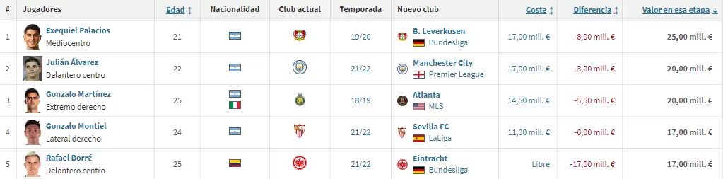 A continuación, analizaremos cuáles han sido las 5 ventas más caras del conjunto "millonario" desde que Gallardo asumió como entrenador a principios de 2014.