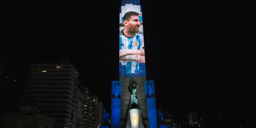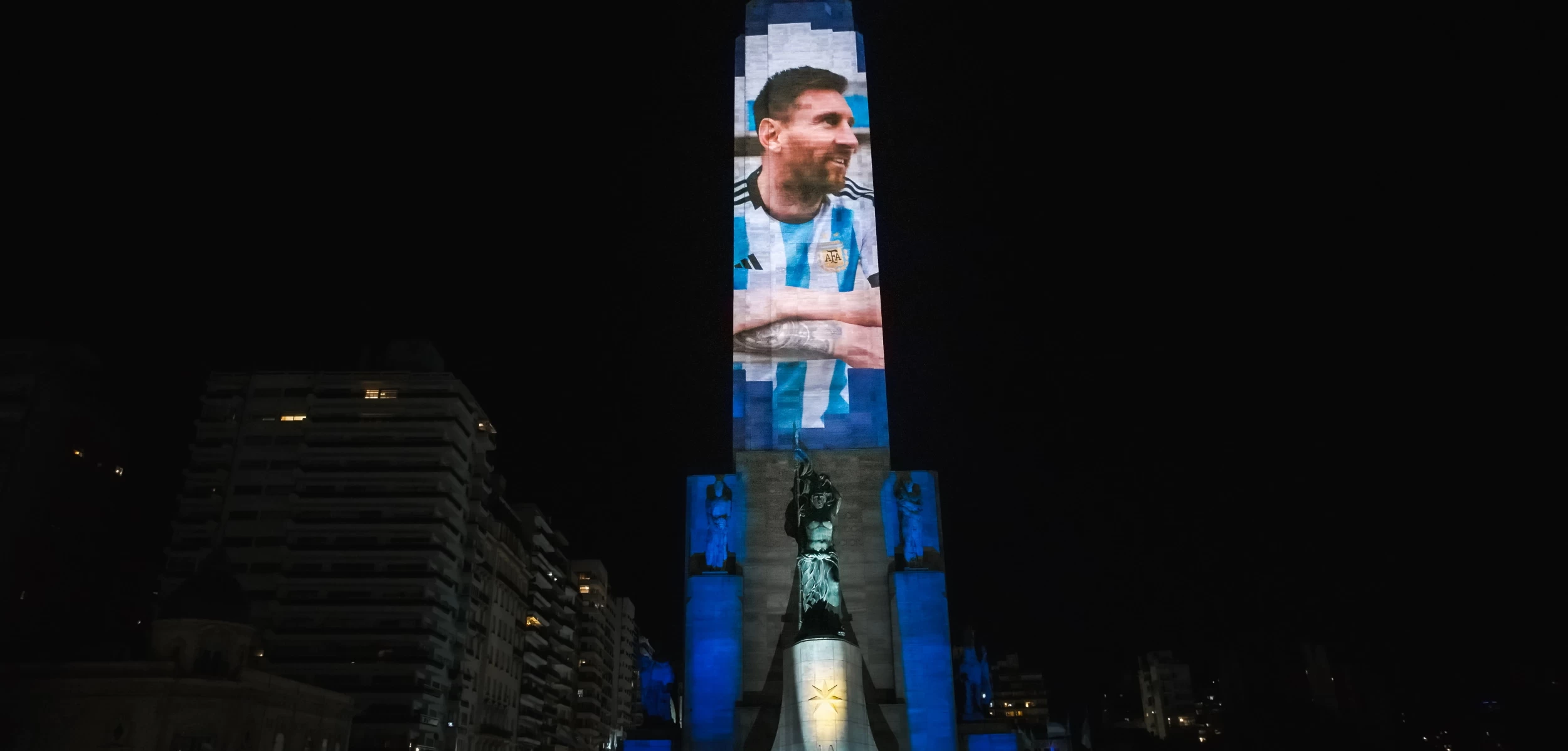 Durante algunas horas en la noche del lunes, sobre el Monumento Histórico Nacional a la Bandera (ubicado en el icónico lugar donde fuera izada por primera vez la bandera argentina) se proyectaron imágenes de "The Impossible Rondo", la película que adidas estrenó antes del comienzo del Mundial, en el que se puede apreciar a Leo Messi jugando un "loco" con sus diferentes versiones de los mundiales pasados (2006, 2010, 2014 y 2018).