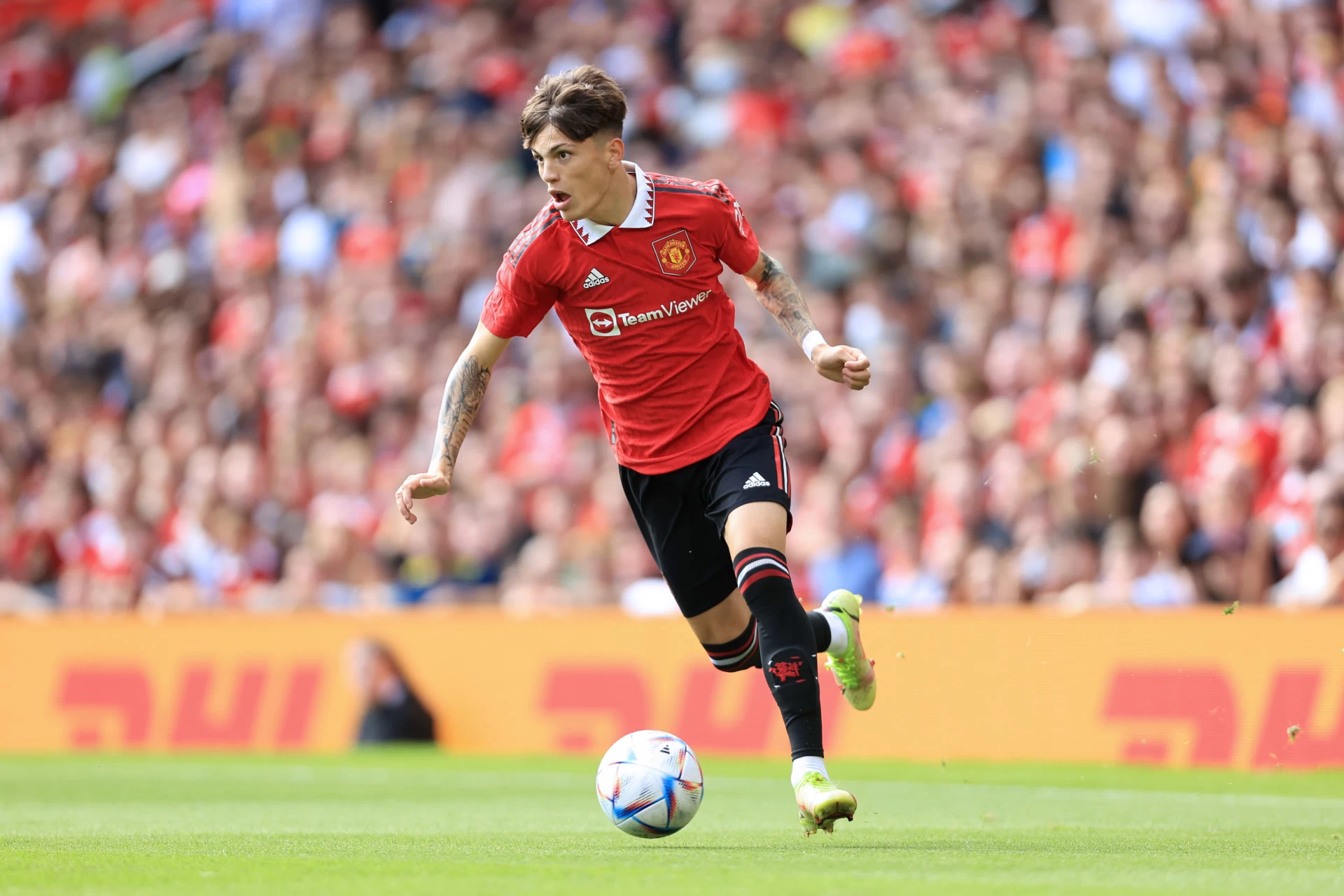 Garnacho, adquirido por el club inglés a mediados del 2021 a cambio de 420 mil euros desde el Atlético de Madrid, en la presente temporada Garnacho ya suma algo más de 300 minutos en el primer equipo del United, en los cuales pudo convertir 2 goles y repartir 2 asistencias, y le bastaron para ser reconocido como el jugador del mes del equipo de Ten Hag.