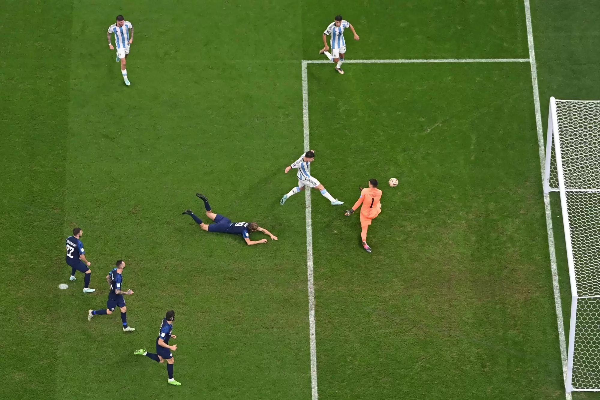 Julián Álvarez, que acumula cuatro tantos en su primera Copa del Mundo, está a uno de los jugadores que más goles hicieron en este Mundial: Messi y Mbappé con 5. Además, la "Araña", pasó a formar parte de un selecto grupo que encabeza Pelé, y es que con sus apenas 22 años, logró convertir por duplicado en una semifinal de mundial, algo que sólo hizo la leyenda brasileña a sus 17 en 1958, el argentino Carlos Peucelle a los 21 en 1930 y el Húngaro Zsengeller en 1938, también a los 22 años.