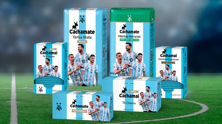 Fiel a su trayectoria de acompañar a los argentinos y con el mundial vibrando en el aire, Cachamai presenta su edición limitada de variantes de de yerba bajo la licencia oficial de AFA: Hierbas Serranas con Cedrón, Yerba Tradicional suave, Té digestivo, Clásico y Mate Cocido.