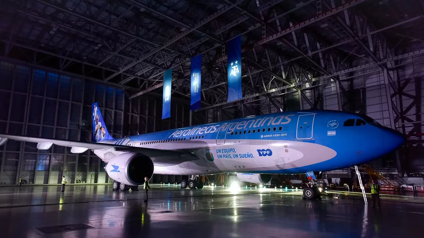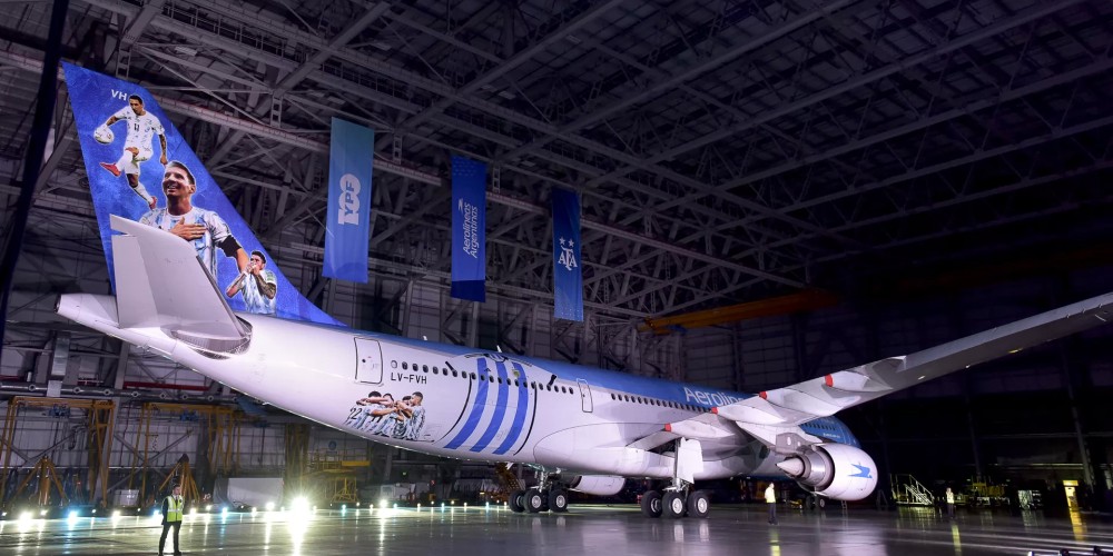 Además, agregó: "Este avión tiene un ploteo muy especial en el cual se puede ver la camiseta argentina y a algunos de los jugadores más importantes del equipo. Es algo muy lindo poder vestir este Airbus 330-200 y verlo en los cielos de todo el mundo llevando los colores de la Selección".