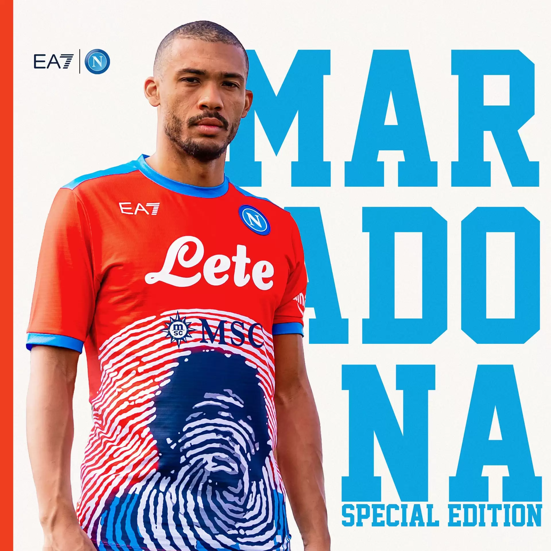 Con respecto a la imagen, en su momento el club napolitano fue autorizado a utilizar unas camisetas conmemorativas. La línea Napoli-Maradona llegó en marzo, con un homenaje que se realizó para el recuerdo de Pelusa, y fueron 4 camisetas: celeste titular, blanca, naranja y azul alternativas, todas con la cara de Maradona superpuesta con una huella dactilar y diseñadas por la marca Emporio Armani y su división deportiva (EA7).
