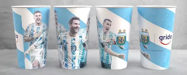 “Hemos lanzados unos vasos de la selección que se consigue, también, comprando el postre y más 250 pesos, te podés llevar el vaso a tu casa. Son vasos coleccionables, vienen distintos motivos, siempre esta Leo por supuesto. Y además de eso, estamos sacando Sundays de la selección con los jugadores, con chips de chocolate celeste y blanco. O sea, tratamos de generar un entorno dentro del local y también para el cliente se puede llevar, para que pueda disfrutar al máximo el evento”, siguió.