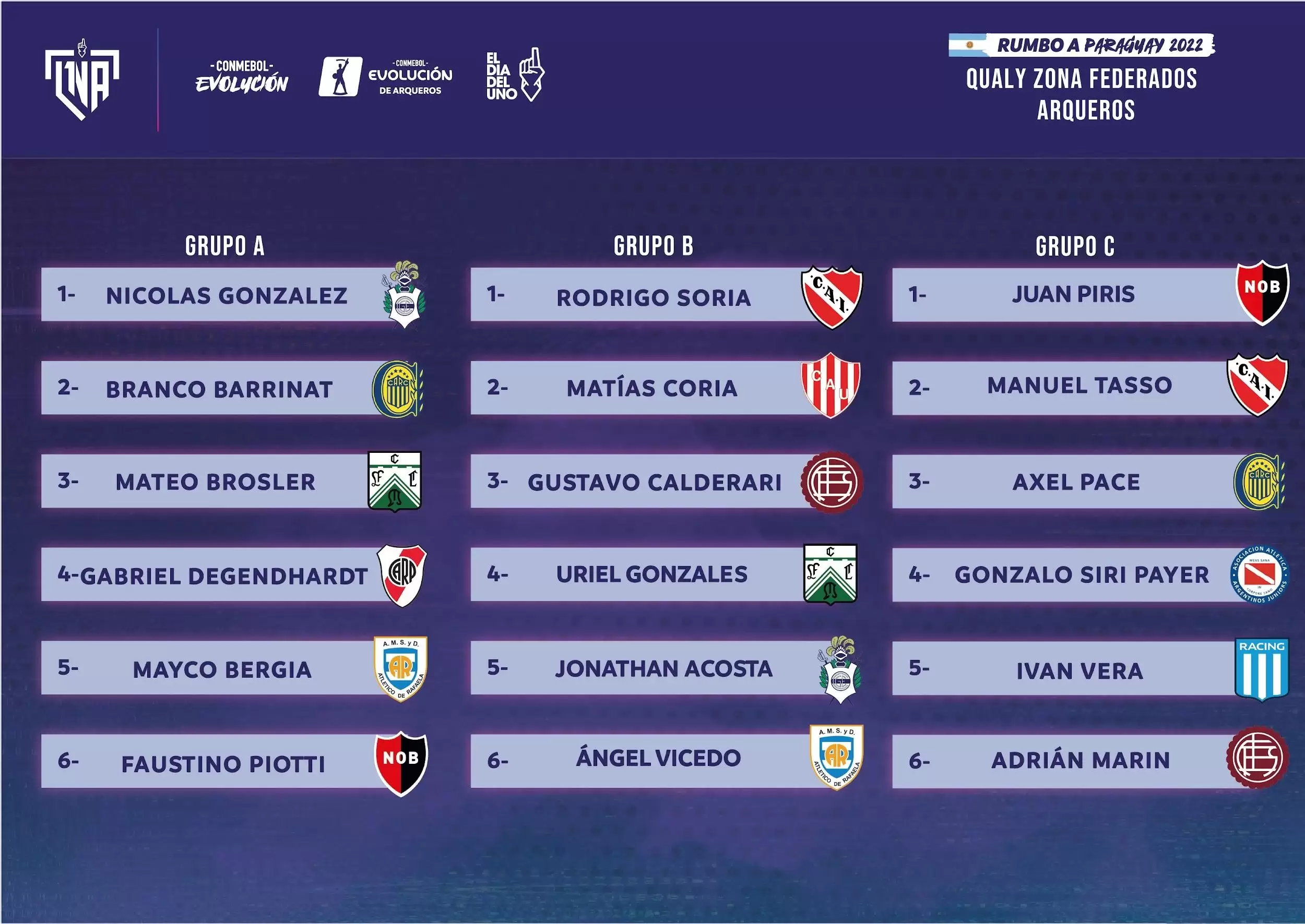 River Plate, Racing Club, Independiente, Newell's, Rosario Central, Gimnasia y Esgrima (La Plata), Lanús, Argentinos Jrs., Unión (Santa Fe), Ferro Carril Oeste y Atlético Rafaela fueron las instituciones que dijeron presente en la edición 2022 de la Liga Nacional de Arqueros, que se destaca por tener a los arqueros "del futuro" ya que en su mayoría son guardametas que integran planteles profesionales. Además, en esta oportunidad, los protagonistas lucieron la vestimenta oficial de su club, imprimiendo mayor prestigio y representatividad.