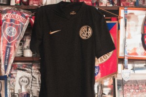 El color negro es una parte histórica de la identidad del Ciclón, tanto que a sus fieles hinchas se los conoce como cuervos. Justamente los fanáticos adoptaron ese mote y lo hicieron parte del folklore del fútbol argentino. Ese negro profundo, propio del cuervo, le da identidad al conjunto, donde se resaltan el CASLA y el Swoosh en dorado sobre el pecho de la camiseta y en los shorts.