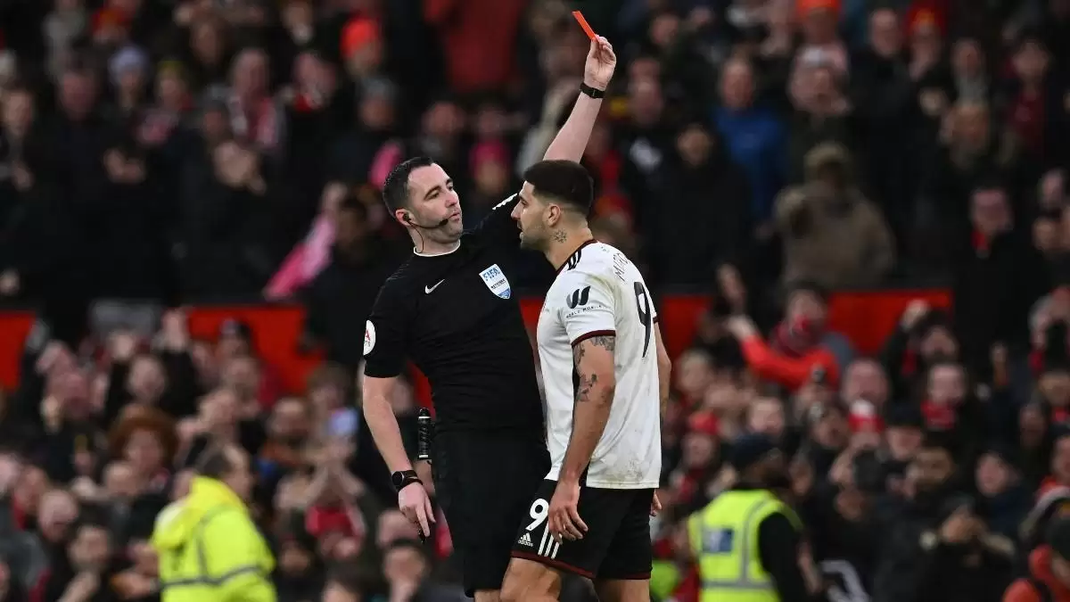Frente a los Diablos Rojos, el delantero reaccionó de mala manera luego de que el árbitro sancione un penal a favor del equipo de Manchester al revisar el VAR. Apenas pitó la pena máxima, comenzó el reclamo y continuó con un empujón por lo que vio la roja. Luego, siguió insultándolo y señalándolo con el dedo.