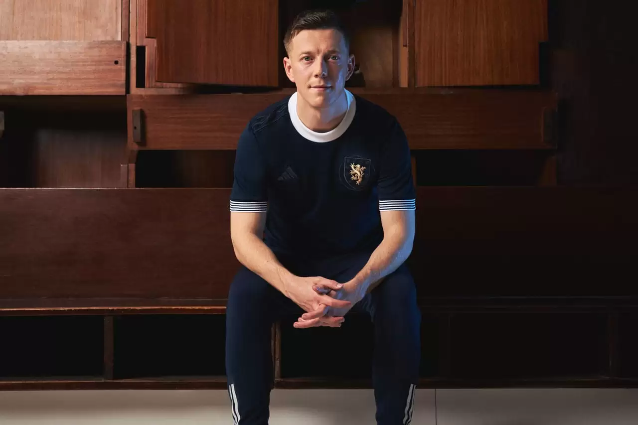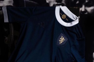 La nueva camiseta de Escocia se inspira en el primer "uniforme" que usaron los jugadores de aquél equipo durante el primer partido de la nación contra Inglaterra en 1872. El diseño refleja la herencia futbolística de Escocia con un diseño simple que está dominado por tonos de azul oscuro en todas partes a lo que se le suma el cuello y las mangas en blanco y el logo de adidas performance en color monocromático también en azul oscuro.