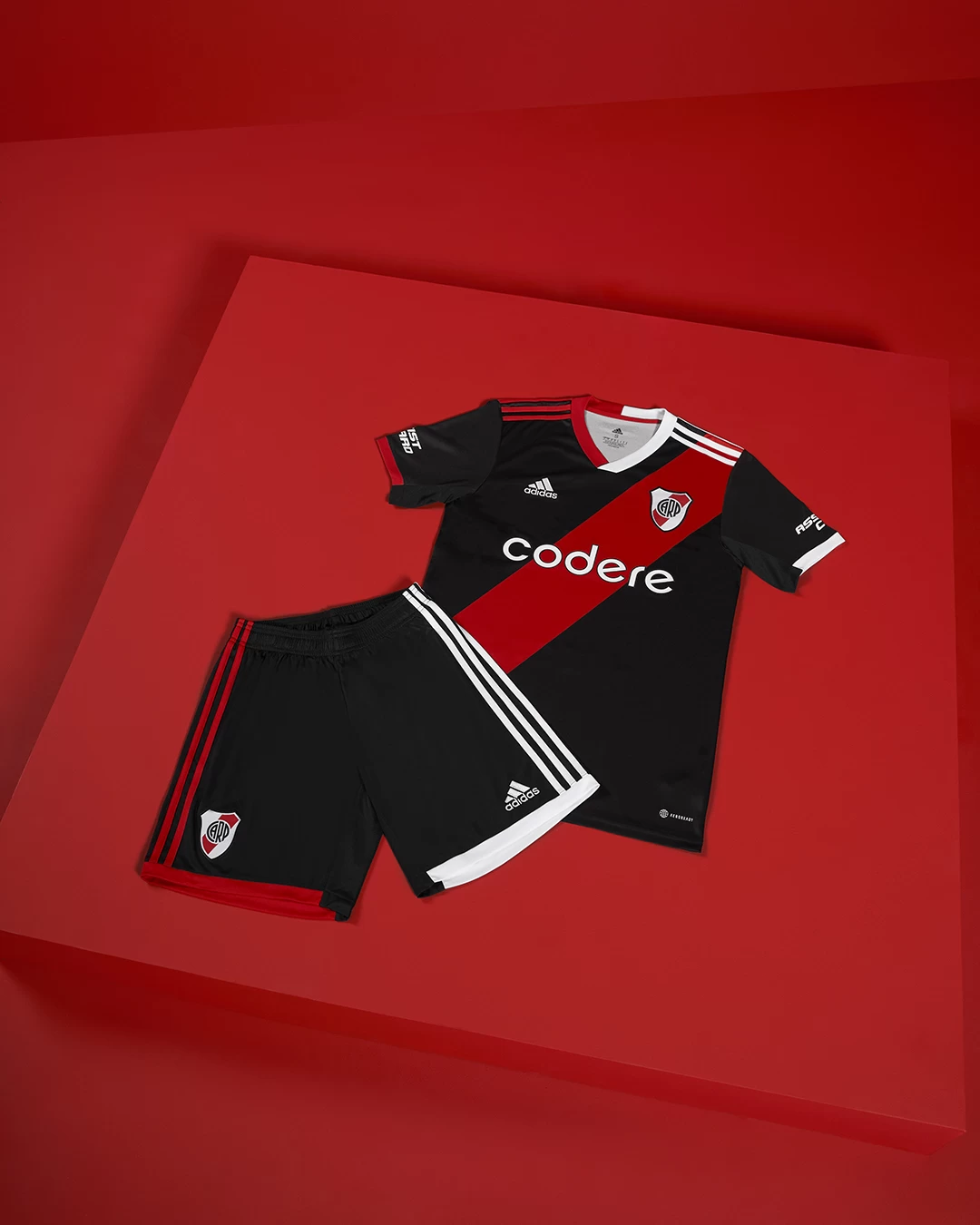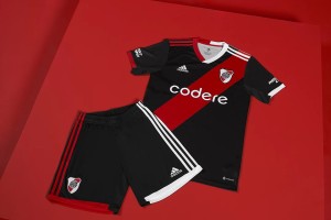 Esta camiseta presenta además un novedoso cuello en V bicolor (una mitad es roja y la otra es blanca), mismo concepto que se aplica en las 3 tiras de los hombros. El uniforme se completa con shorts y medias negras, también con detalles simétricos en rojo y blanco. Bajo el lema “De River de corazón”, este lanzamiento completa la colección iniciada el año pasado, con las actuales casacas titular y alternativa. El estreno de la nueva tercera camiseta se producirá esta noche, en ocasión del encuentro en el que River visitará a Atlético Tucumán, en la provincia del norte argentino.