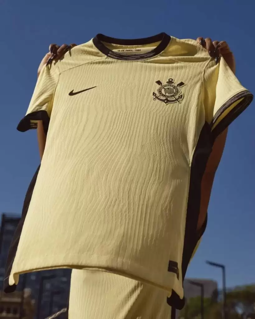 Corinthians lanzó, su tercer uniforme para la temporada 2023. En amarillo con detalles negros, rinde homenaje a la Democracia Corinthiana, movimiento que tuvo lugar en los años 1980, y que contó con el liderazgo histórico de