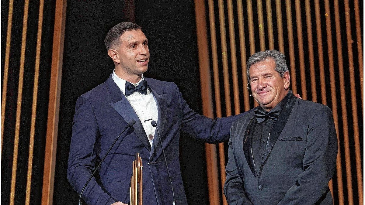 En la gala del Balón de Oro 2023, Emiliano Dibu Martínez volvió a hacer historia: se llevó el Trofeo Lev Yashin, que distingue al mejor arquero del año. El arquero de la Selección Argentina fue reconocido en gracias a sus atajadas, en la que sobresale la que realizó frente a Randall Kolo Muani en la última jugada de la final de la Copa del Mundo. El galardón se lo entregó su papá.