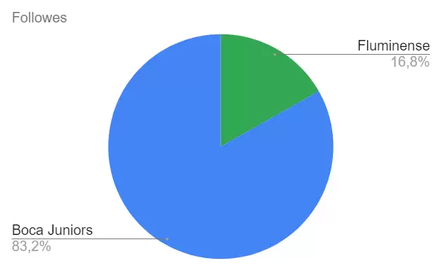 Juntos, los dos clubes tuvieron 332.236.833 millones de interacciones en sus páginas oficiales de Instagram hasta el 24 de octubre , 10 días antes de la final de la Copa Libertadores de América. La ventaja de Boca Juniors es mínima: 179,4 millones, frente a los 152,8 millones del Fluminense hasta el momento.