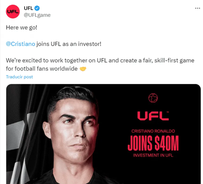Según reveló la propia cuenta del juego en X, el ex Real Madrid y Manchester United se sumó al proyecto con 40 millones de dólares. “Estoy emocionado de ser parte de este proyecto porque UFL puede convertirse en una nueva alternativa a los videojuegos de fútbol”, señaló Cristiano Ronaldo en un comunicado.