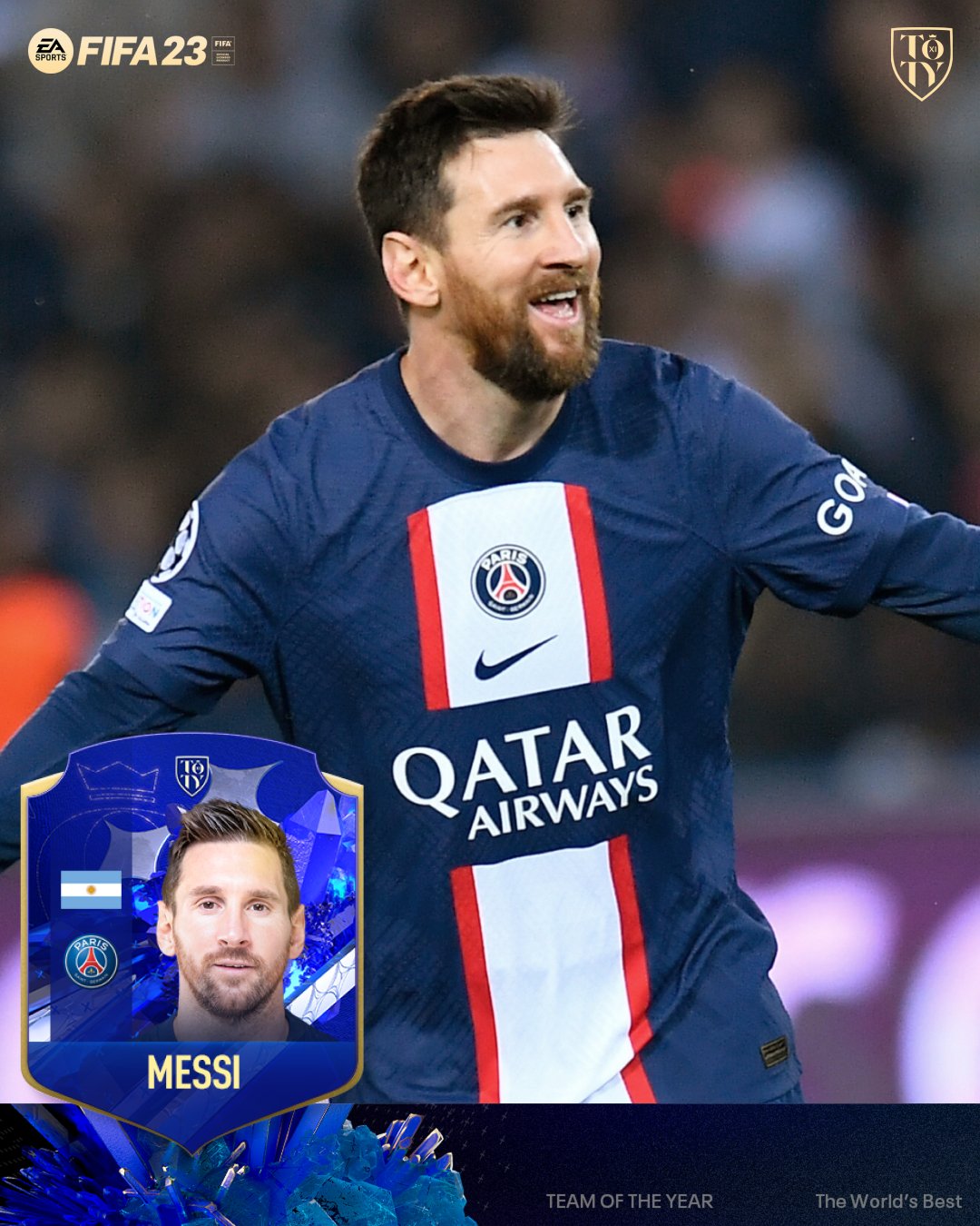 El “TOTY” es el equipo que la comunidad de FIFA elige como el mejor del año y los candidatos son preseleccionados anteriormente por EA Sports. En total son 100 los futbolistas con posibilidades de ser parte del Equipo del Año, y varios argentinos, actuales campeones del mundo, tienen su lugar.