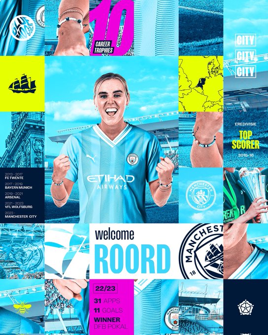 Roord llega desde el Wolfsburgo, equipo en donde le quedaba un año de contrato. En Alemania marcó 31 goles y consiguió tres títulos. En la pasada campaña llegó a la final de la Champions, que quedó en manos del Barcelona. El objetivo en su nuevo club será clasificar a la Champions League de la siguiente temporada y pelear en el frente al igual que en el equipo masculino. "Espero que podamos alcanzar muchos éxitos juntos. Regresar a la Champions, pero también ganar la Liga son objetivos posibles con la calidad que tenemos al equipo. También las copas”, señaló la jugadora.