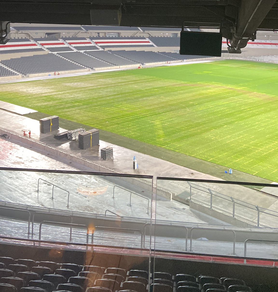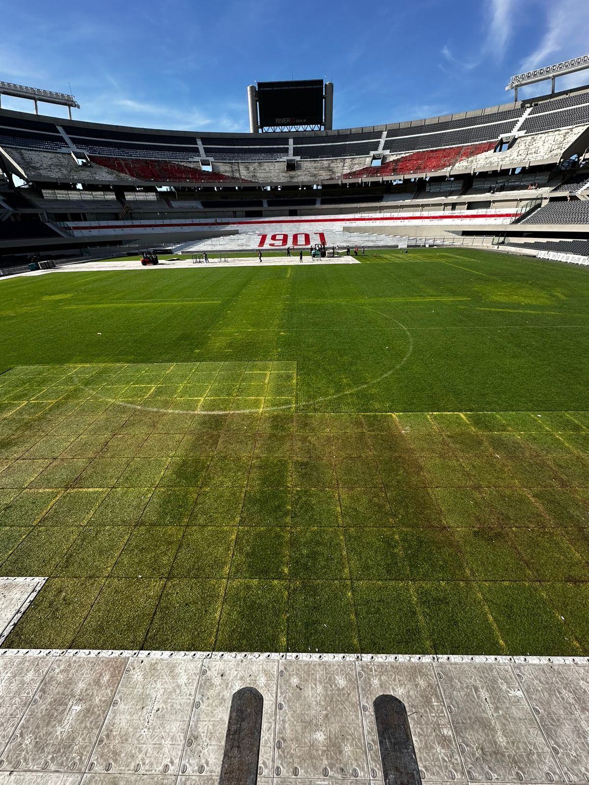En este contexto, una vez que terminaron de desarmar todo el montaje de los recitales, el club emprendió el último fin de semana una especie de resembrado a contrarreloj que sirvió para que luzca un poco mejor frente al Rojo. Cabe aclarar que los recitales significaron para River el ingreso de ni más ni menos que 20 millones de dólares, los cuales hicieron posible la remodelación del estadio Monumental, sumado a la preventa de plateas y palcos.