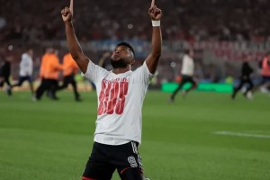 “Yo tenía claro que primero estaba Dios. Durante la semana previa tenía mucha fe que iba a marcar, por eso llevé la remera. Me dicen que se está vendiendo, ojalá que siga así”, declaró el colombiano luego del entrenamiento del miércoles que diagramó el club a puertas abiertas. Además, se refirió a la gresca del final que pasaba a su espalda: “Me dañaron la celebración. Me di cuenta del escándalo mientras estaba festejando, pero tenía que seguir en lo mío, estaba en otra. Había muchos jugadores dentro de la cancha y traté de estar lejos de eso”.