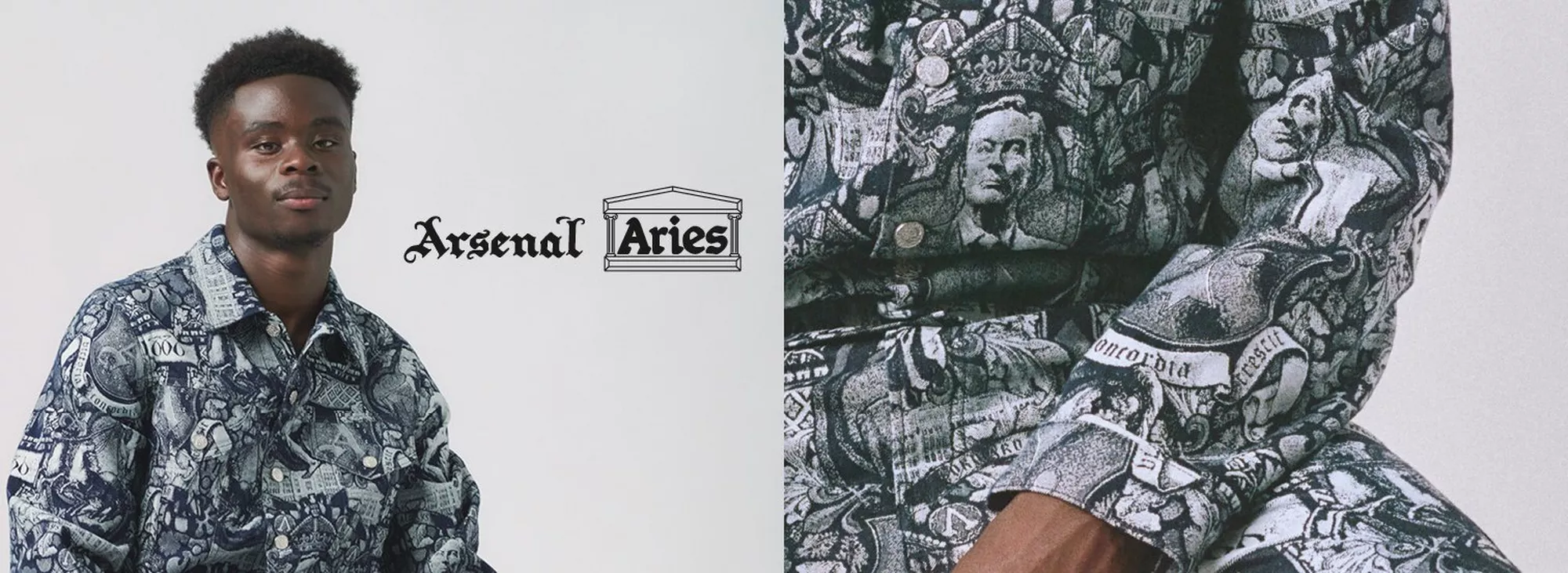 El Arsenal presentó una colección de streetwear en colaboración con la marca Aries. La colección “Faithful Arsenal” cuenta con 26 piezas y busca unir los mundos del deporte y la cultura, ofreciendo buzos, remeras, camisetas, camisas y pantalones inspirados en camisetas del equipo. Además, aparecen gráficos personalizados en toda la línea, incluido “1886”, el año en que se fundó el club de Londres.