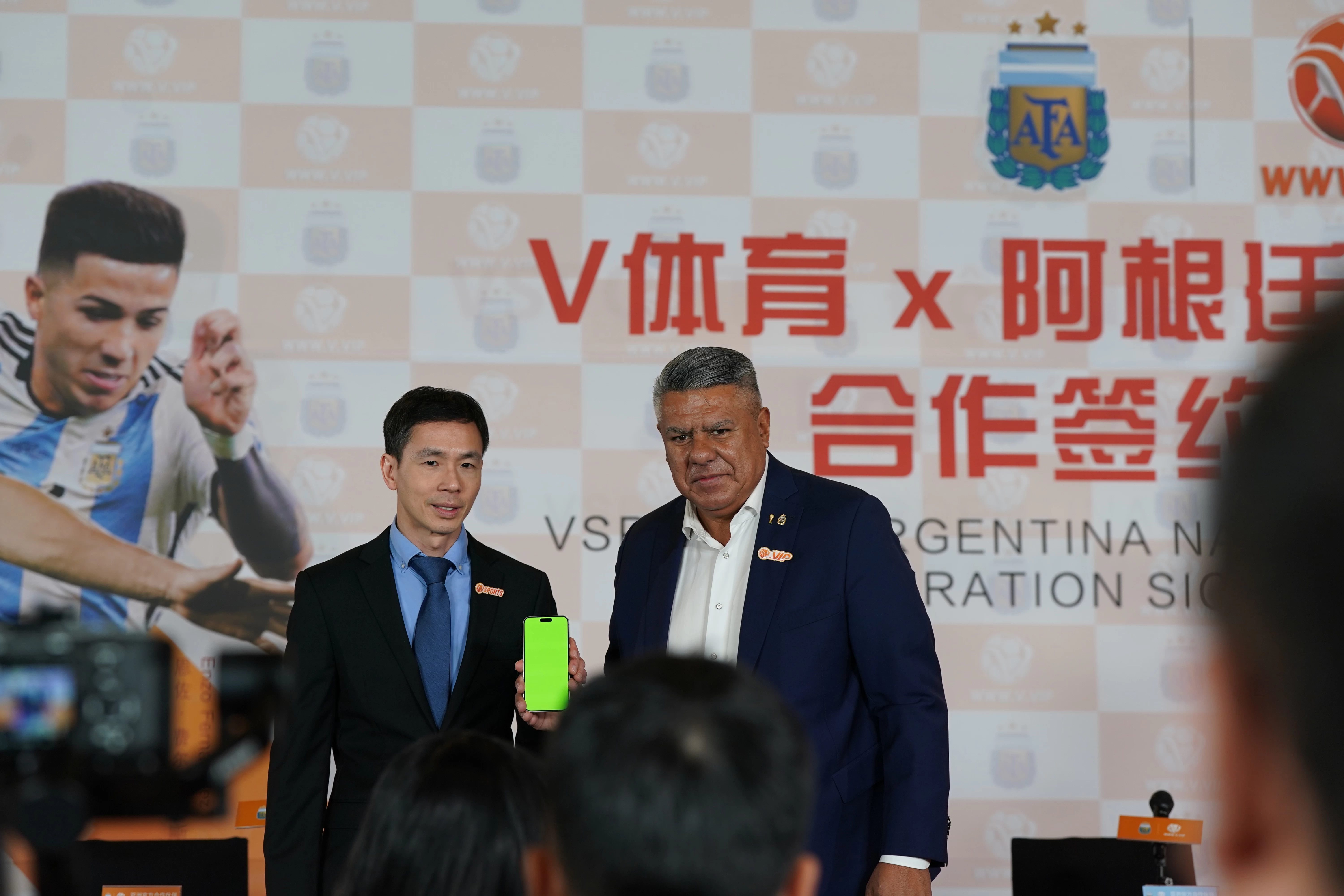 Claudio Tapia, Presidente de AFA, destacó: "En los últimos años, la AFA ha desarrollado una fuerte expansión en mercados mundiales, pero sobre todo en el mercado asiático. Gracias a un duro trabajo en equipo, nuestra asociación continúa celebrando acuerdos como el que hoy celebramos con VSPORTS. Las marcas más importantes encuentran hoy en la Selección Argentina, un socio estratégico para sus planes de marketing en las diversas regiones, AFA ofrece un plan destinado a cada uno de sus socios comerciales. Doy la bienvenida a VSPORTS a la plataforma de patrocinio de nuestra Selección”.