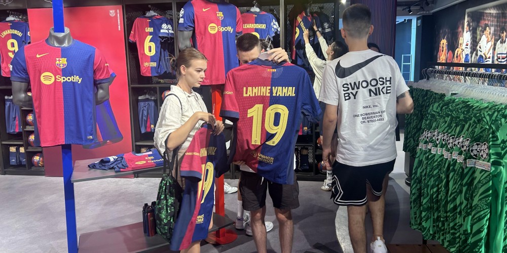 Las tiendas oficiales donde se registró más afluencia de aficionados y volumen de ventas fueron las del Spotify Camp Nou, donde desde casi una hora antes había ya colas para ser de los primeros en llevarse la nueva elástica azulgrana, el Passeig de Gràcia de Barcelona y la Rambla de Canaletes. Además de los culés autóctonos, los muchos turistas que están de vacaciones en Barcelona no dejaron escapar la ocasión de adquirir la camiseta. Como era de esperar, la camiseta 19 de Lamine Yamal fue la más buscada por los hinchas.