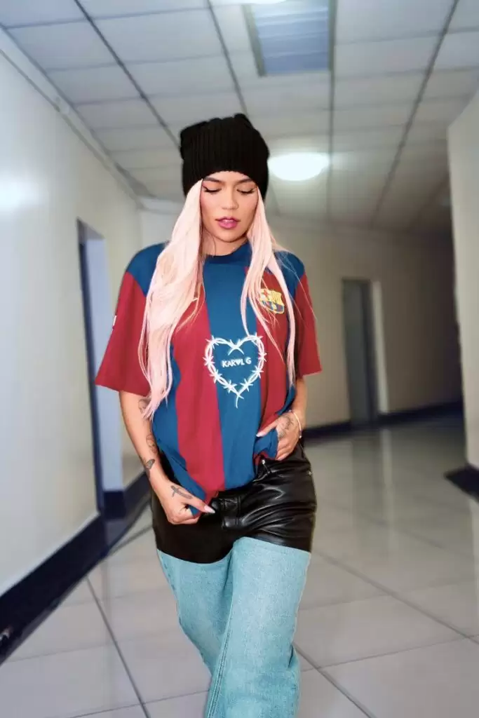 “El símbolo del corazón representa lo que se convirtió en el estilo 'Bichota', un momento de mi vida donde encontré fuerza, resiliencia y apoyo. Gracias a Spotify y al FC Barcelona, verlo en el frente de una camiseta que inspira tanta energía es realmente significativo”, dijo KAROL G.