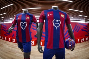 El Barcelona Femení será el primero en lucir la camiseta especial con el logo del corazón de alambre de púas característico del artista cuando se enfrente al Villarreal el 13 de abril. El equipo masculino lo utilizará en el clásico contra el Real Madrid, el 21 de abril, en el Santiago Bernabeu.