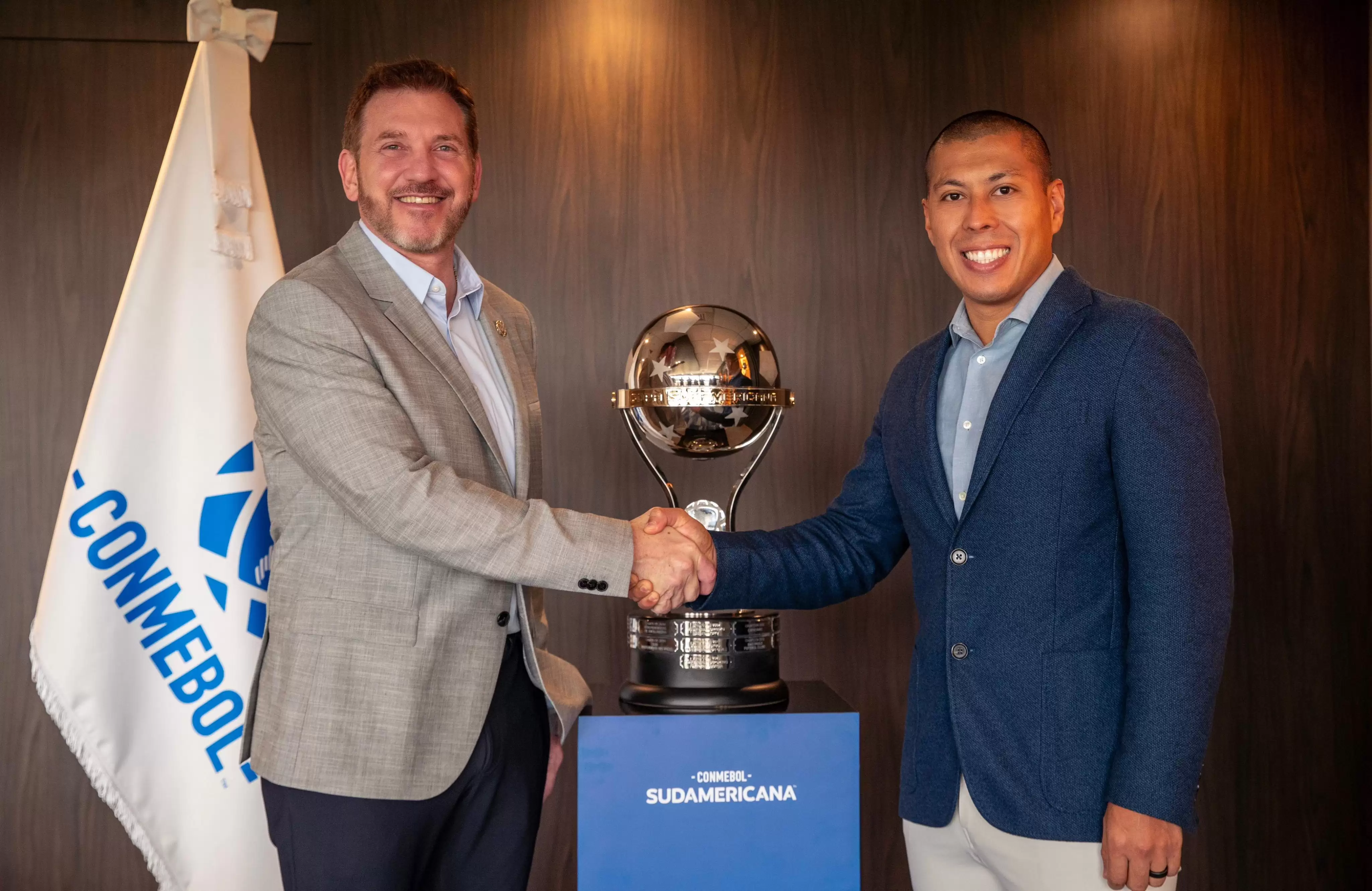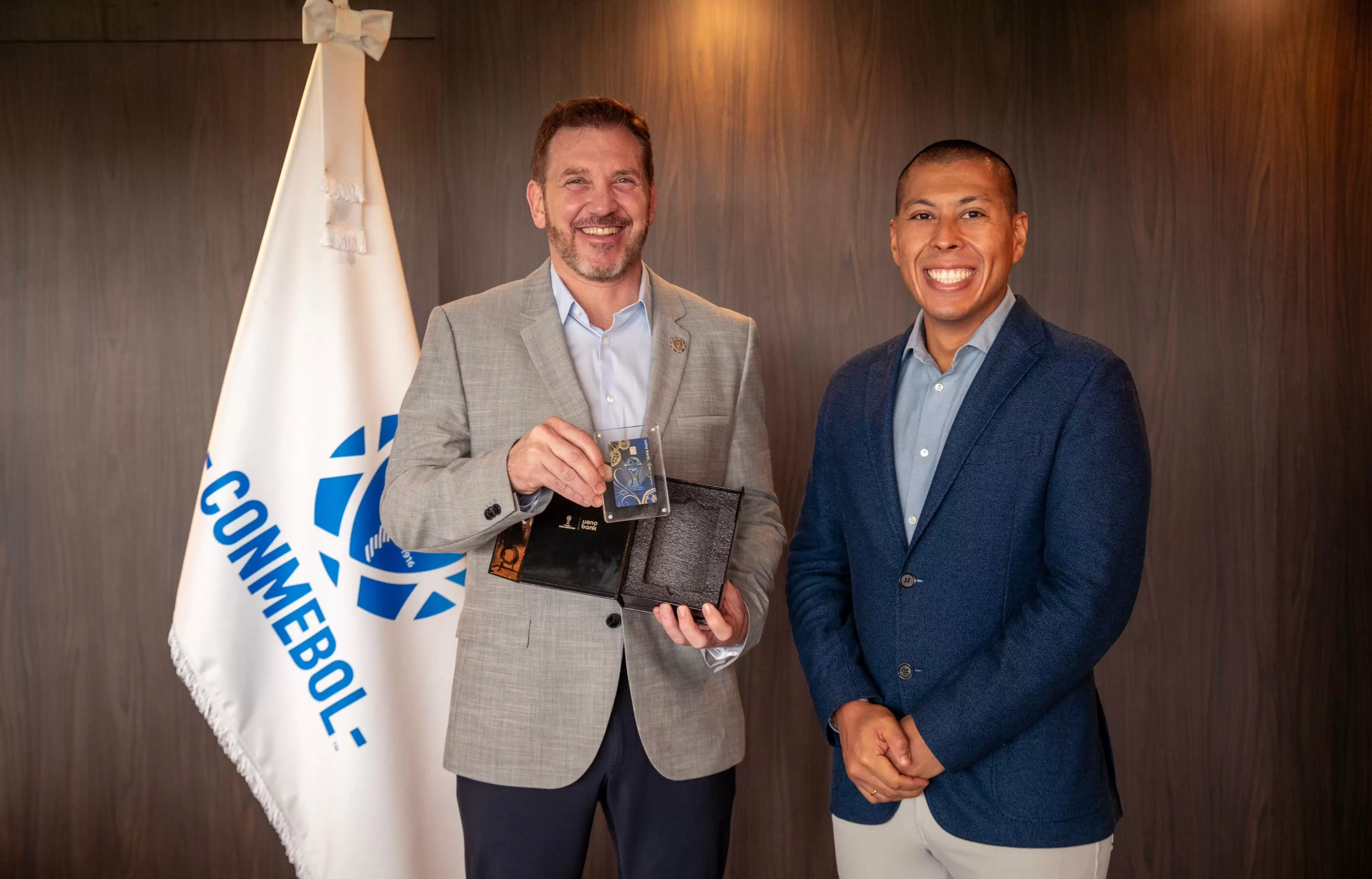 La Confederación Sudamericana de Fútbol anunció su alianza con Ueno Bank, que se será el séptimo patrocinador oficial de la CONMEBOL Sudamericana. Por este motivo, el CEO de Ueno Bank Miguel Vázquez visitó al presidente Alejandro Domínguez en la sede de CONMEBOL en Paraguay para dar inicio oficial a la relación de ambas empresas.