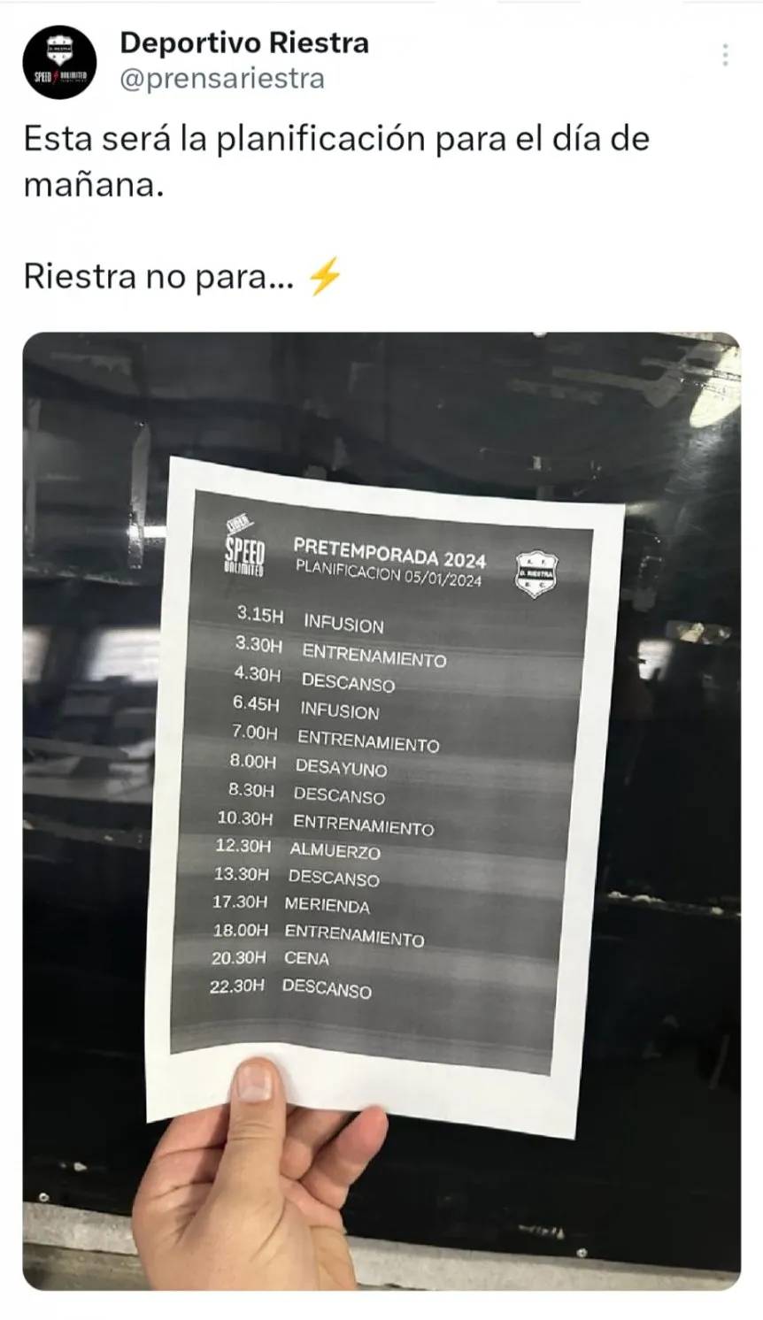 Una de las novedades que tendrá este año la Primera División de futbol argentino es Deportivo Riestra, que jugará por primera vez en la máxima categoría. El conjunto del Bajo Flores arrancó hace unos días la pretemporada con una curiosidad en cuanto a la planificación del entrenamiento.