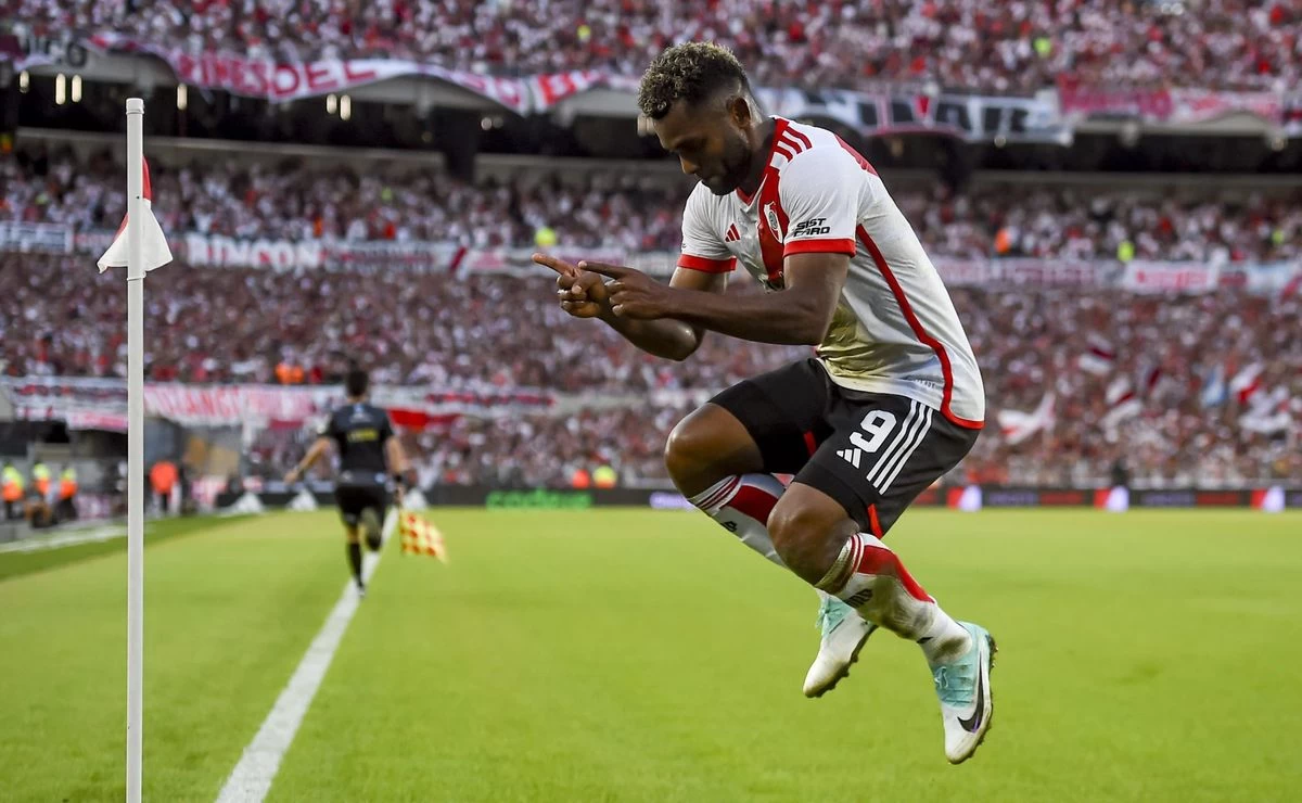 Desde su aterrizaje en Núñez en el segundo semestre de 2022, el atacante que jugó la Copa América 2021 con la Selección Colombia jugó 66 encuentros oficiales y marcó 30 goles, lo que le da un promedio de 0.45 tantos por partido. El ex-Junior está muy cerca de empardar a Lucas Alario, el tercer máximo goleador de la época del Muñeco, que llegó a los 41 en 82 compromisos (0.50).