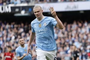 Erling Haaland convirtió cuatro goles en la victoria de Manchester City 5-1 ante Wolverhampton por la fecha 36 de la Premier League, que le sirvió a su equipo quedar a un punto de la cima (Arsenal es el líder con 83 unidades) con un partido menos. Julián Álvarez ingresó a los 37 minutos del complemento por el delantero noruego, y a los 39` hizo un tanto.