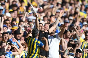Antes del final del primer tiempo en el match de anoche vs. San Lorenzo, el Coloso Marcelo Bielsa vio cómo caían del cielo unos papelitos con los que Central le recordó la ventaja de partidos en el clásico.