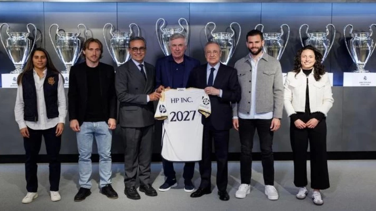 Tras muchos años con los activos de la camiseta bloqueados por la aerolínea Emirates, su patrocinador principal, Real Madrid anunció un acuerdo con HP para que la compañía tecnológica estampe su logo en la manga de la camiseta blanca. El trato es hasta 2027 e incluye explotar la manga de la camiseta en todos los equipos de fútbol del club, incluido el femenino y la cantera.